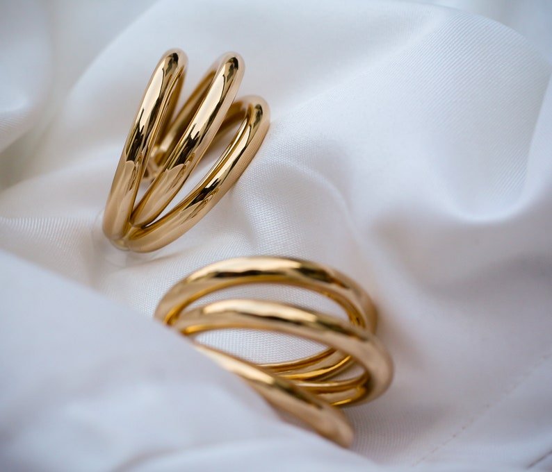 Classic High End Triple Hoop Earring, 18K Real Gold Plated